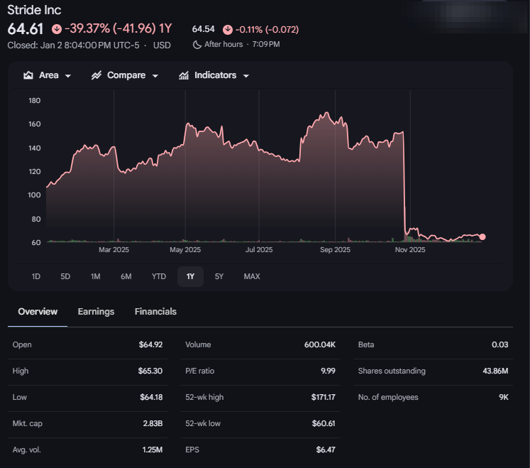 The public narrative treats Stride like an edtech company whose fate should rise or fall with innovation cycles, academic outcomes, or political goodwill. In that frame, controversy equals weakness. Poor test scores equal existential risk. Contract terminations equal revenue loss.